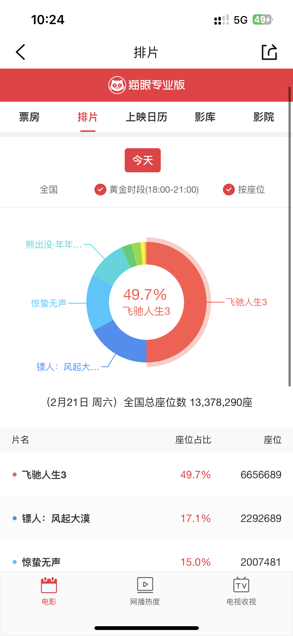 看排片跟排座还是反超了,而且黄金档的排片也排到第二,感觉靠口碑硬生生把局面挽回了一点!