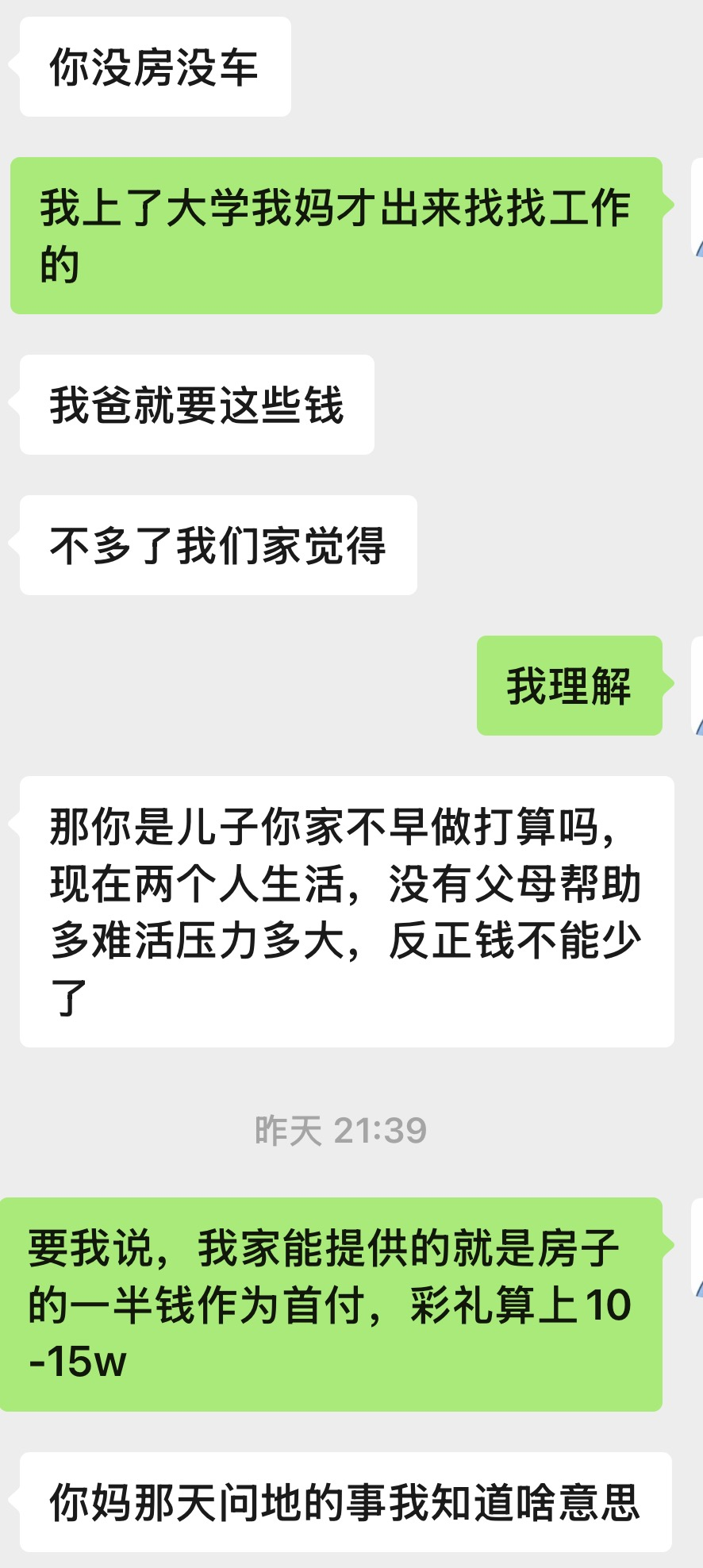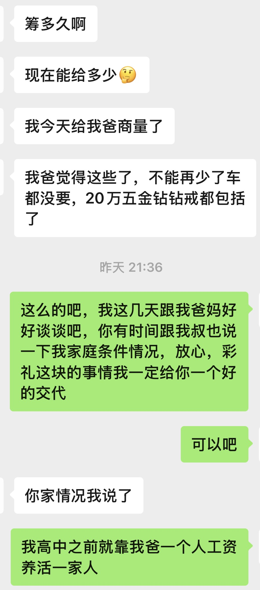 彩礼问题,希望各位给我好的建议